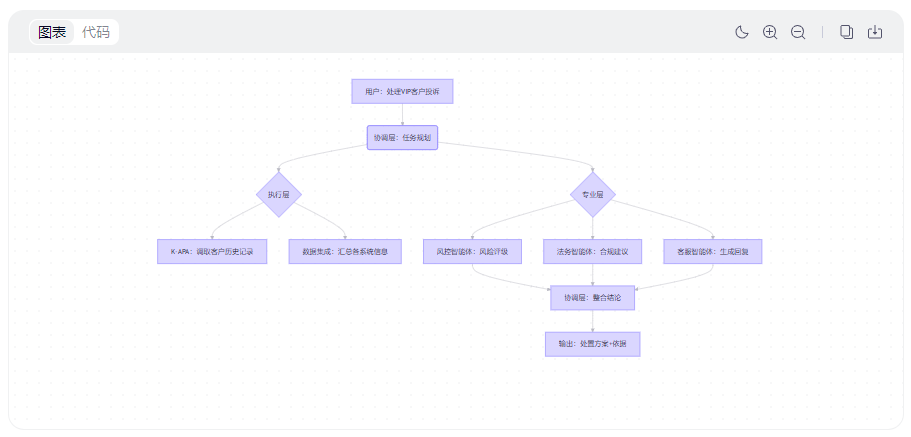 职责:接收用户目标(如“处理VIP客户投诉”),进行任务规划与资源调度;