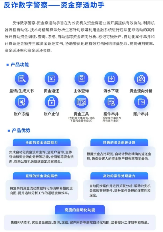 这份来自省厅单位的点名致谢,充分验证了金智维反诈数字警察在风险识别、预警干预、效率提升等方面成效卓著,已成为赋能反诈工作提质增效的关键力量。 一、警企协作“打防并举”,科技打造反诈“利刃” 近年来,在党中央、国务院的坚强领导下,在国务院“131”机制办的统筹指挥下,四川省各级有关部门深入贯彻落实习近平总书记关于打击治理电信网络诈骗犯罪工作重要指示精神,认真贯彻落实《中华人民共和国反电信网络诈骗法》,全面防范、深入治理、严厉打击电信网络诈骗犯罪,有效提升了人民群众获得感、幸福感和安全感,为维护社会大局稳定和人民群众财产安全作出了积极努力。 在日常反诈工作中涉及通信、交易、身份证明等海量数据,这些数据不仅量大而杂,还需要实时更新和分析,以便及时发现和阻止诈骗行为。以往反诈全流程高度依赖人工操作,不仅占用大量人力,更可能因处理时效滞后,导致预警不及时、拦截不精准,直接影响案件处置效果。 对于反诈工作而言,预警与拦截速度恰恰是守护群众资金安全的关键因素之一。面对上述挑战,早在2023年,金智维联合四川省成都市公安局成华区分局、武侯区分局完成了K-AFA反诈数字警察的首次部署上线,并形成综合性解决方案,覆盖资金预警止付、账号冻结等多个步骤,实现反诈工作全流程自动化,为公安机关打击电信网络诈骗犯罪提供了强有力的支持。 基于在成都市成华分局和武侯分局的成功试点与持续优化,德阳、眉山、绵阳、乐山、南充、资阳、巴中等城市近40家分局迅速引入反诈数字警察,并将其融入当地反诈工作体系之中,协助警方快速识别涉诈线索,实现精准预警与高效联动,为反诈工作提供了强有力的科技支撑。 二、金智维K-AFA反诈数字警察赋能反诈业务全流程自动化 在具体实践中,金智维K-AFA反诈数字警察以安全可控为前提,通过对警用综合平台、国家反诈大数据平台等系统的合规对接,实现跨平台业务协同处理。依托多层加密、动态权限管控与全流程留痕机制,确保敏感数据调用过程可追溯、可审计。在资金冻结、账户止付等关键操作环节,结合多级校验机制与人工复核,有效降低人工操作风险,满足公安机关对数据安全和司法审计的严格要求。 同时,金智维通过“自动化流程+智能决策”的双引擎架构,将大量规则清晰、重复度高的操作任务交由反诈数字警察执行,减少基层民警在多系统间频繁切换的工作负担,使警力资源能够更多聚焦于侦查研判等核心工作,逐步形成“机器跑流程、民警精作战”的新型警务生态。 除四川省以外,金智维K-AFA反诈数字警察已在广东、江苏、浙江、北京、西藏、贵州、云南、宁夏、新疆等多地反诈中心累计部署2000余个,参与处置案件数十万起,协助冻结支付资金规模超过百亿元,在反诈实战中形成了成熟、稳定的应用模式。 在反电信网络诈骗这一高强度、强时效、强合规的业务场景中,金智维K-AFA反诈数字警察的规模化应用,为公安机关探索警务流程智能化提供了现实路径。基于这些成熟的实践经验,金智维不断沉淀相关应用模式,推动AI数字员工在公安体系内实现更大范围的复制推广,逐步形成覆盖多类警务流程的智能协同机制,为公安系统推进数字化、智能化转型提供可复制、可扩展的实践范式。